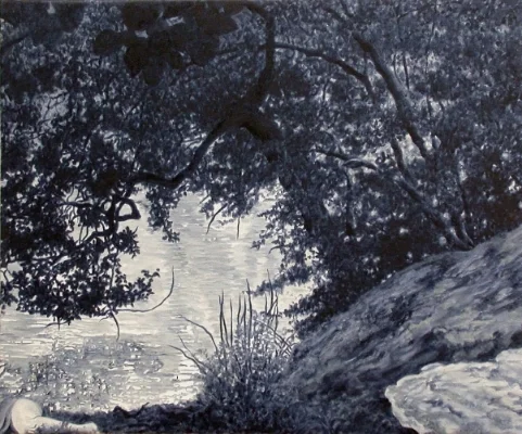 "COLLISION: Nymphs in Aux Nympheas," Oil on Canvas, 48"h x 60"w, 2001