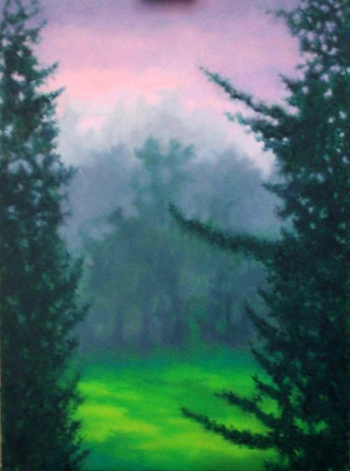 TABULA RASA: Landscapes aimed directly at the emotional jugular. Masquerading as classically based landscapes documenting real places, these images are actually inventions culled from the intoxicating ether of sensation, given to reveling in the sensuality of buttery paint and, as well, in the luminosity, translucence and visceral texture of wax. Unabashedly romantic, they are drenched in poetic evocation, lush color and incandescent light. Erased of externally imposed narrative, they afford the viewer's imagination a blank slate in which to dream.